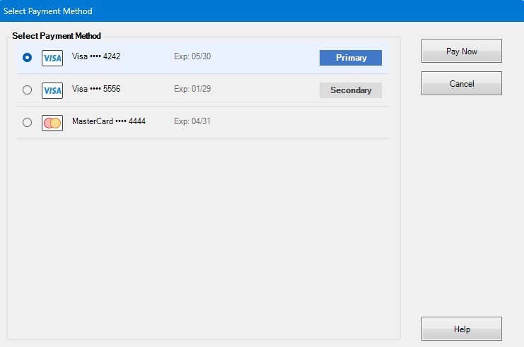 Choose one of the client’s saved credit cards.