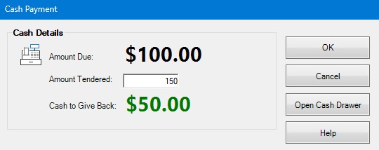 Use the available tools to calculate change and open the cash drawer.