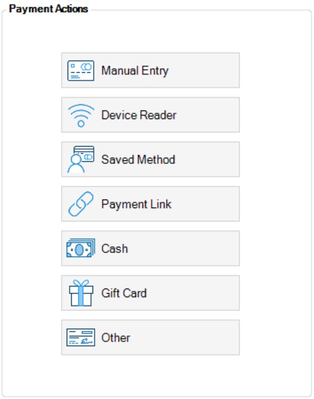 In the Payment Actions section (right side), select one option to record how the payment will be taken.